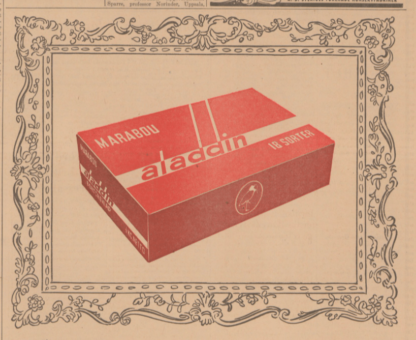 Ungefär samtidigt [1958] blev både Aladdin och Paradis etablerade svenska högtidstraditioner på allvar då Marabou lät tillverka speciella jul- och påskomslag till sina kartonger, ett marknadsföringsgrepp som återkom med jämna mellanrum under kommande decennier.