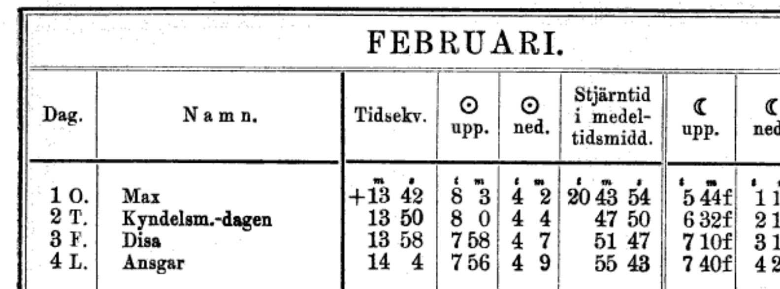 Så namnlängdskommittén valde 1901 att placera Disa den 3 februari på grund av kopplingen till disatingen och kyndelsmässodagen blev kvar dagen innan.