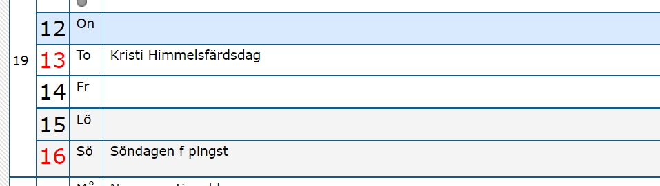 Detsamma gäller fredagen efter Kristi himmelsfärdsdagen, om du är ledig för att det är en klämdag beror på vilket kollektivavtal eller vilka lokala regler som gäller. Så på samma sätt som ex trettondagsafton eller skärtorsdagen så är det upp till varje arbetsplats eller ev upp till respektive kollektivavtal att avgöra om de anställda har extra ledighet pga helgdagsafton.