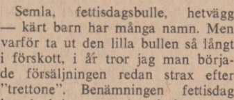 Två år senare (1958) skriver DN igen om hur man i Skåne börjat sälja semlor redan i januari. Men redan före 1950-talet hade man börjat sälja semlor innan fettisdagen.