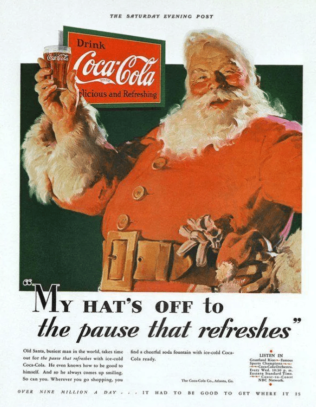 Dock har Coca Cola (tillsammans med Disneys Jultomtens verkstad) haft en avgörande betydelse i att befästa hur jultomten ska se ut. Redan på 1920-talet började Coca Cola att göra annonser inför jul där jultomten förekom. Inför julen 1930 ritade Fred Mizen en jultomte som drack Coca Cola i varuhuset Famous Barr Co. i St. Louis.