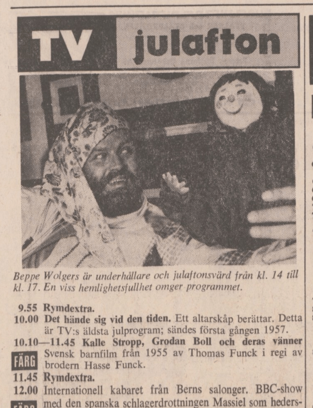 Källa: ”Julens tomtar och troll i radio och tv” Aftonbladet 1961-12-23