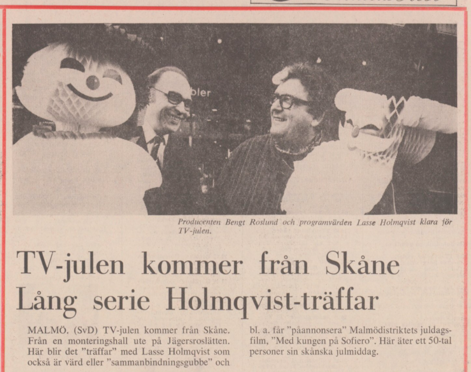 Under julhelgen 1971 var det Lasse Holmqvist från Malmö som fick uppdraget. Så här skriver DN 17 december: