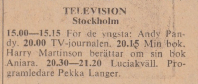 1959 – Lussibiten. Ett program på tysta fjät (kl. 20.00-20.30)