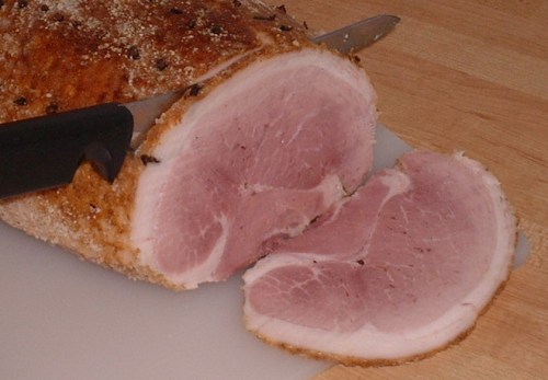 Smör, bröd, sill i oljesås, ansjovisgratin, god bräckkorv, skink- och njursauté, rädisor, ost, löskokta ägg. Kall kyckling med ärter, grönsallad och tomater i marinad samt varm sås.