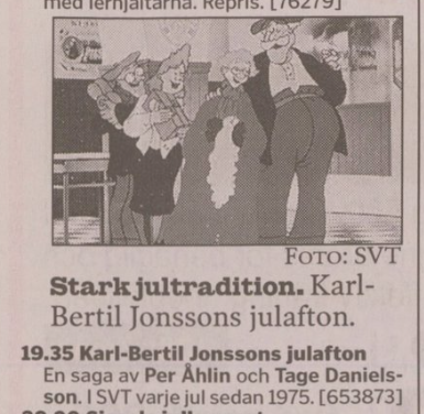 Bland de teve-program som blivit klassiker på julafton finns givetvis Sagan om Karl-Bertil Jonssons julafton med. Den har sänts varje jul på svensk teve sedan julafton 1975 och lockar över en miljon tittare.