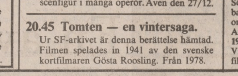 Första gången som Tomten – en vintersaga faktiskt visades på julafton var 1981 och då skriver man i teve-tablån: ”Ur SF-arkivet är denna berättelse hämtad”.